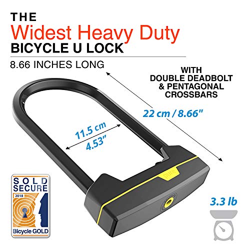 Seatylock pentagon pure bike u lock widest heavy duty bike lock with key set, bicycle lock with double deadbolt & pentagonal crossbars, uncuttable and unbreakable bicycle accessories, 8.66 in.